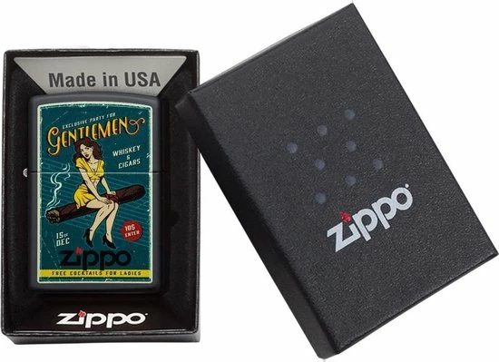 Metalen aansteker in een mat zwarte uitvoering (black matte) met een opdruk. Dit is een vuursteen aansteker die gevuld dient te worden met aanstekerbenzine. Het merk Zippo heeft een zeer goede reputatie opgebouwd door de jaren heen door hun levenslange garantie en hun uitstekende kwaliteit.