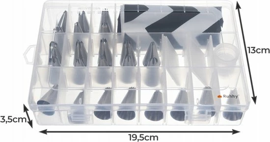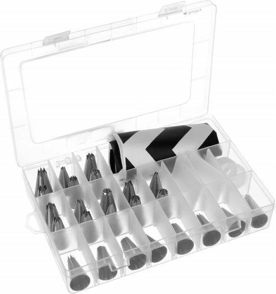 Naast een verscheidenheid aan mondjes voor het decoreren van gebak en desserts, is er ook een praktische tuit voor het decoreren van boter , wat de functionaliteit van de set verder vergroot.