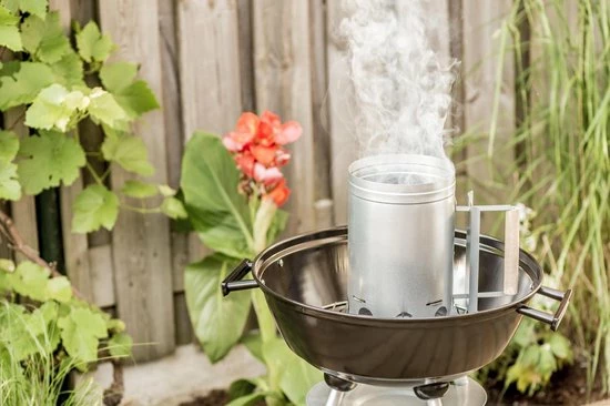 Het werkt heel eenvoudig. Je doet een paar aanmaakblokjes onder de koker of wat krantenpapier, vult de cilinder met houtskool of briketten en je steekt de aanmaakblokken/ kranten aan. Binnen zo’n 10 Ã 15 minuten giet je de houtskool of briketten uit de koker en verdeel je ze gelijkmatig, waarna je BBQ van start kan.