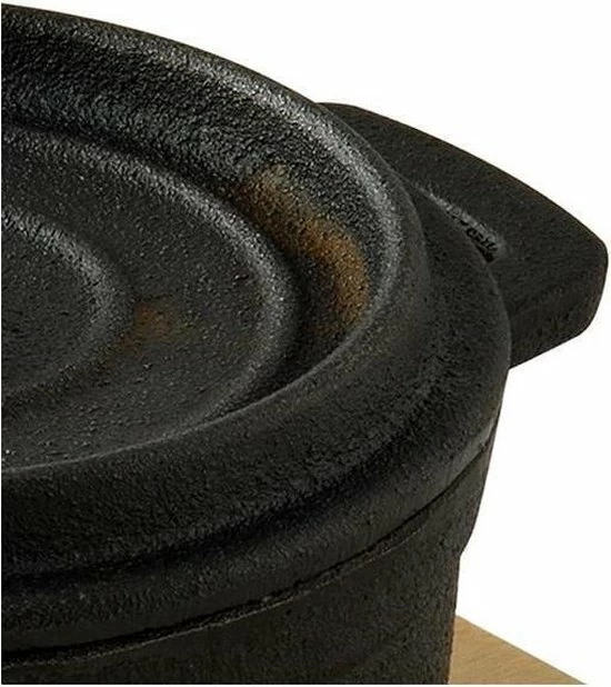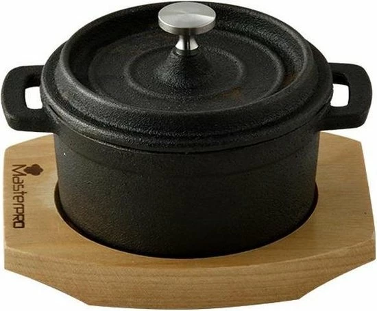 Met behulp van de minipannen van Masterpro, zet jij de lekkerste tapasgerechten op tafel. Deze mini stoofpan is geschikt om kleine gerechten te bereiden, of om tapas te serveren. De pan is voorzien van een houten serveerplank, die als onderzetter gebruikt kan worden. Doordat de pan van gietijzer is, blijft de pan lang op temperatuur.