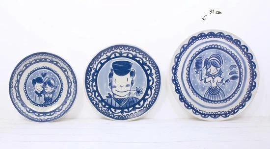 Ook zo dol op Holland? Dan is het nieuwe ‘Delfts Blond’ pannenkoekbord helemaal voor jou. Een serviescollectie met Blond interpretatie op het traditionele Delfts blauw. De illustraties zijn geïnspireerd op typische Hollandse tafereeltjes zoals schaatsen, fietsen in Amsterdam en varen.