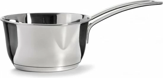 De pan heeft een diameter van 10 cm en is 6 cm hoog. De pan is gemaakt van edelstaal en heeft een inhoud van 0,3 L. De pan is geschikt voor alle warmtebronnen inclusief inductie, let wel op de minimale diameter van de detectie van de inductie. Let op 10 cm is de diameter van de bovenzijde van het pannetje.