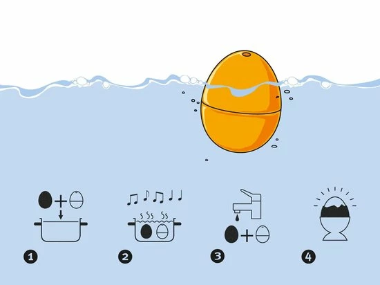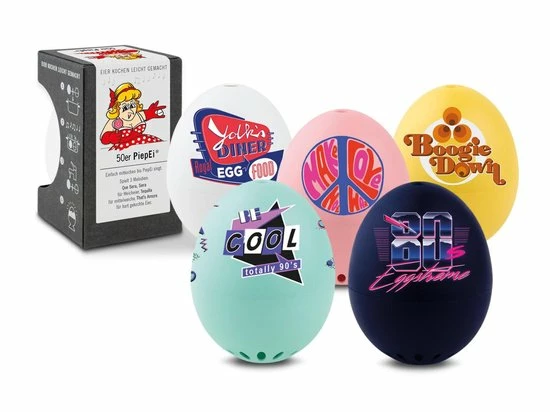 Altijd het perfect gekookte eitje met het 50’s Hits PiepEi van Brutus Kookt. Bewaar je PiepEi bij de eieren zodat het dezelfde temperatuur heeft, kook het PiepEi met de eieren mee en het zal diverse melodietjes afspelen: ”Kung Fu Fighting ” (voor zachtgekookt), “YMCA” (middel), “It’s A Heartache” (hardgekookt).