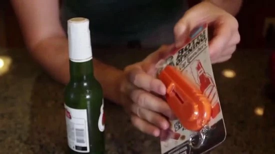 Het is heel erg simpel. De dopjes schieter beschikt over een veer. De span je eerst door een knopje naar beneden te duwen. Als hij vast zit laat je hem los, open je het biertje. Het dopje blijft er dan in zitten. Vervolgens druk je op de knop onderaan en schiet je het dopje weg!