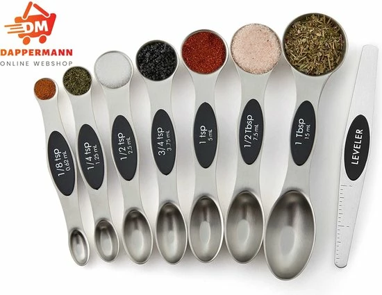 je de set moeiteloos op dankzij de compacte magnetische pasvormen. Onze Luxe Maatlepelset is