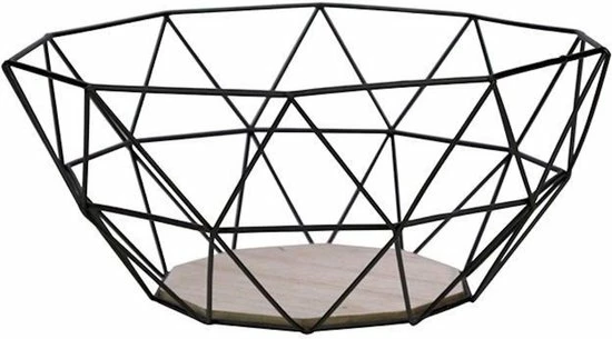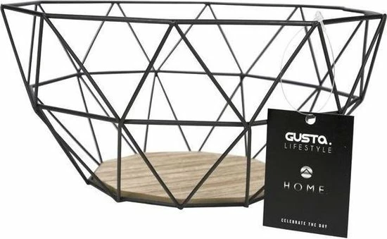 Gusta Fruitmand zwart. Fruit op tafel is voor iedereen een vrolijke binnenkomer. De mooie en felle kleuren van het fruit komen perfect tot hun recht in de zwarte fruitmand van Gusta. De schaal is ruim en er passen daardoor diverse stukken fruit in. Materiaal: Metaal / Hout.