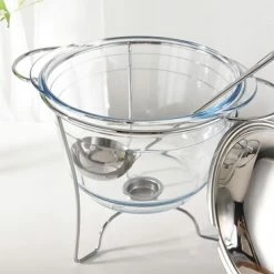 Deze glazen soepterrine is ideaal voor het serveren van soepen. De soepterrine heeft een warmtehouder, zodat u de soep warm kan houden. Deze soepterrine is ook geschikt om als cadeau te geven. Ook ideaal te gebruiken op feestjes en partijen