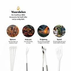 CuisiNoon® BBQ Accessoires Set – Incl. Opberghoes – BBQ Set Met BBQ Tang, Vork, Spatel En Spiezen