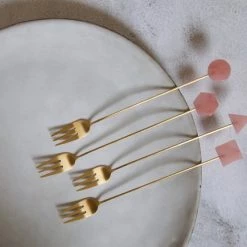 Oliva’s – Gebaksvorkjes – Taartvorkjes – Kleine Vorkjes – Set Van 4 Stuks – Goud / Roze