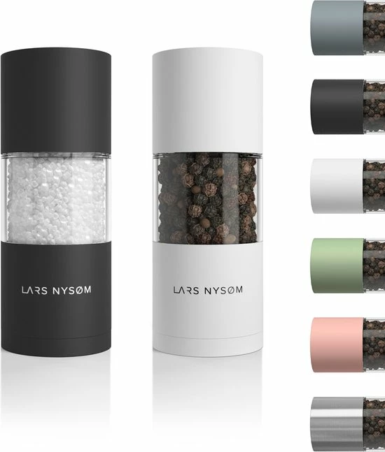 De peper- en zoutmolenset van LARS NYSØM combineert bekroond, minimalistisch design met uitstekende functionaliteit. Perfect voor alles wat het leven pit geeft – peper, zout of chili.
