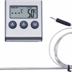 Door de stevige hittebestendige sonde is het mogelijk om de sonde in de oven te plaatsen en de juiste temperatuur te bekijken. Doordat de sonde 1 meter lang is, past deze in elke oven of BBQ. De achterkant van de thermometer is voorzien van meerdere systemen zodat deze gemakkelijk kan worden neergezet of opgehangen.