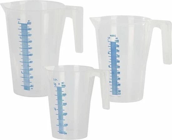 Keukenbenodigdheden/kookgerei transparante maatbekers. Koken en bakken maataanduiding beker. Saus maken inhoud afmeten.