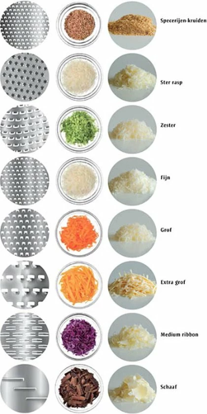 | Opties rasp | Vaatwasserbestendig, Mogelijkheid, om, op, te, hangen |