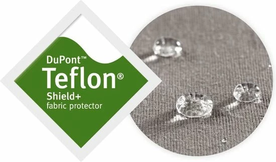 Teflon is een behandeling die ervoor zorgt dat het tafellaken water- en vlekkenafstotend is. Je kan deze behandeling echter niet zien noch voelen.