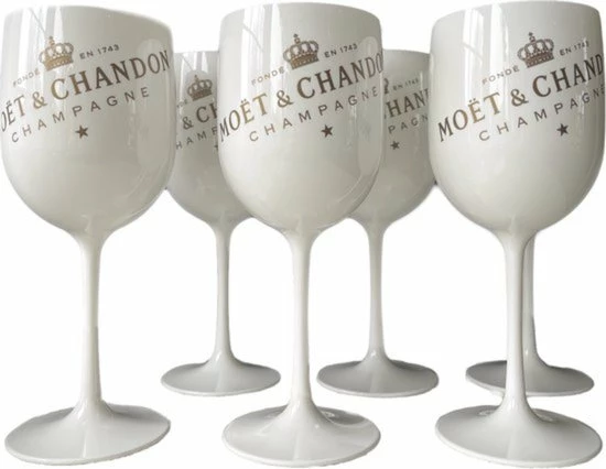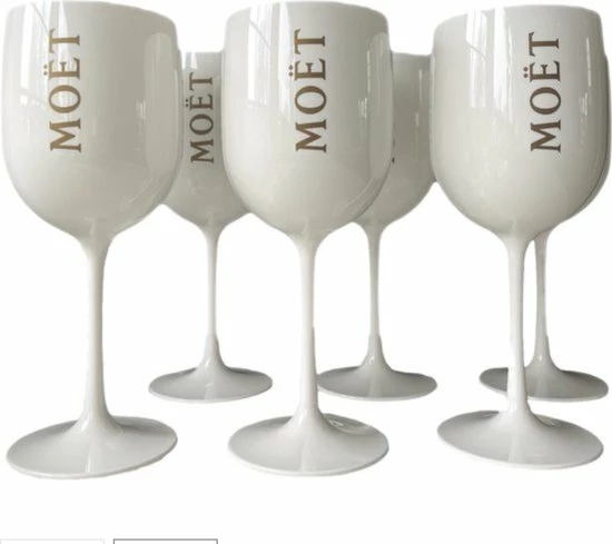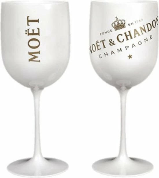 Het witte glas is stijlvol en herkenbaar. Het laat een unieke indruk achter. De glazen zijn van een speciaal kunststof en moeilijk breekbaar. Zo kunnen de Moët & Chandon glazen ook beter meegenomen worden op locatie. Zoals bijvoorbeeld tijdens het drinken van Moët & Chandon Ice op het strand, tijdens een speciale gelegenheid of de jaarwisseling. Deze glazen drinken heerlijk en zorgen voor de perfecte smaakbeleving.