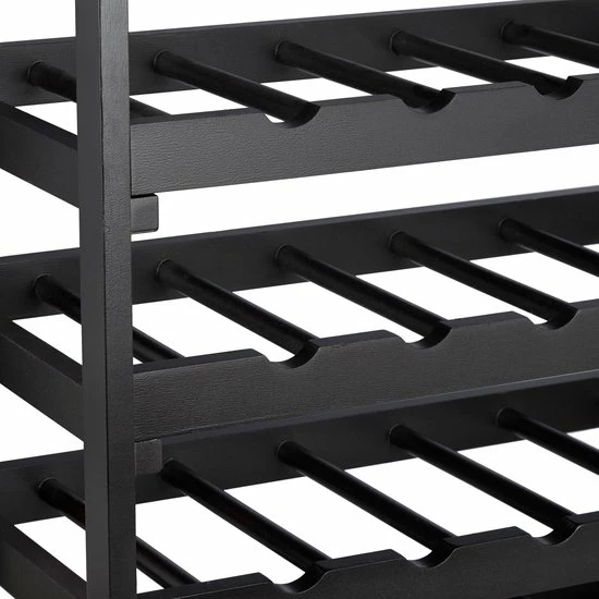 Dit hoogwaardige wijnrek gemaakt van hout in de kleur zwart is geschikt om 20 flessen wijn op te bergen. Op 4 etages heeft hij per etage ruimte voor 5 flessen. Het bovenste plateau is geschikt om glazen, karaffen, geopende wijnen of andere voorwerpen op te plaatsen.