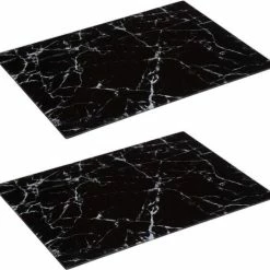 Secret De Gourmet 2x Stuks Snijplank Rechthoek Zwart Met Marmer Print 40 X 30 Cm Van Glas – Serveerplank – Broodplank