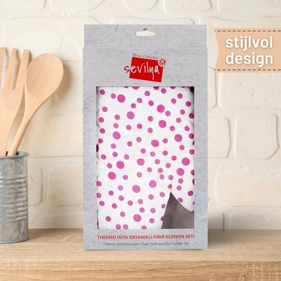Het pakket bevat 1 keukenhandschoen en 1 pannenlap.