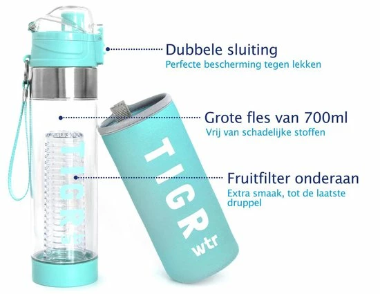 Vind je het een opgave om elke dag 2 liter water te drinken? De TIGR WTR fles met fruitfilter helpt je om op een gezonde manier te hydrateren. Perfect in combinatie met een detox kuur of het wegwerken van overtollige kilo’s!