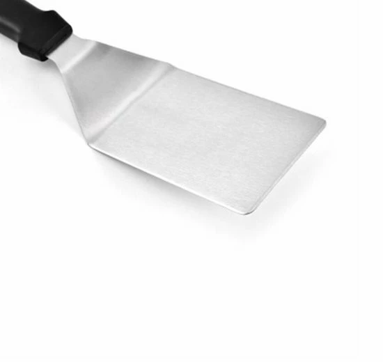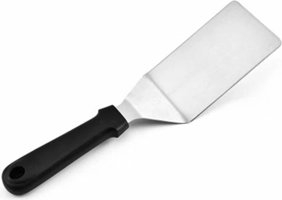 Deze barbecue spatel van roestvrij staal is ideaal voor o.a. BBQ liefhebbers. Door de breedte van de spatel is hij niet alleen geschikt voor vis en vlees, maar ook voor spiegeleieren, pizza’s, pannenkoeken en taarten. Het heft is gemaakt van zwart Polypropyleen kunststof en ligt uitstekend in de hand. Deze BBQ Spatel is alles wat je minimaal nodig hebt voor jouw BBQ. Eet Smakelijk!
